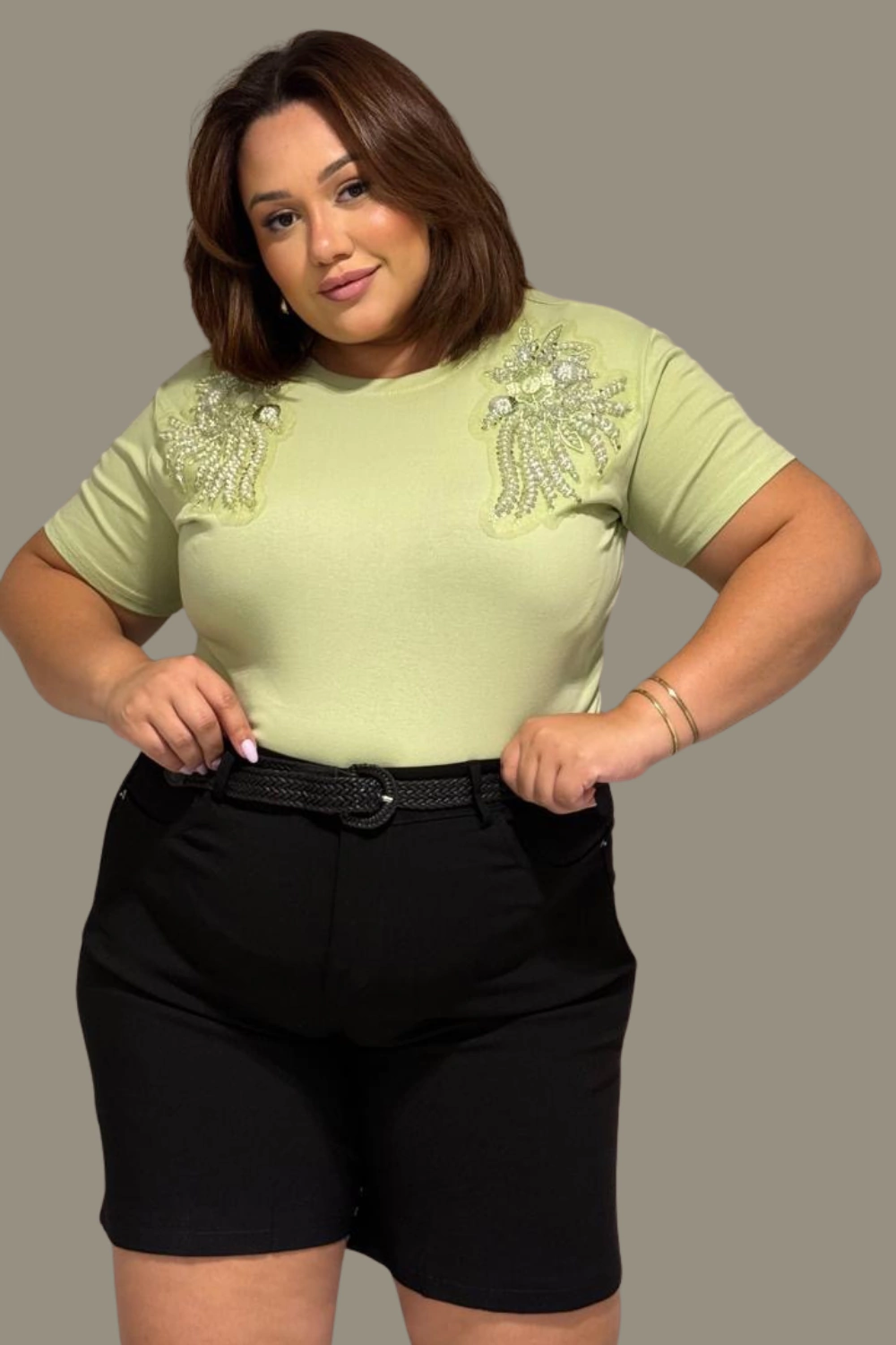 Medidas da Modelo: Busto: 112cm I Cintura: 96cm I Quadril: 131cm I Bunda: 135cm