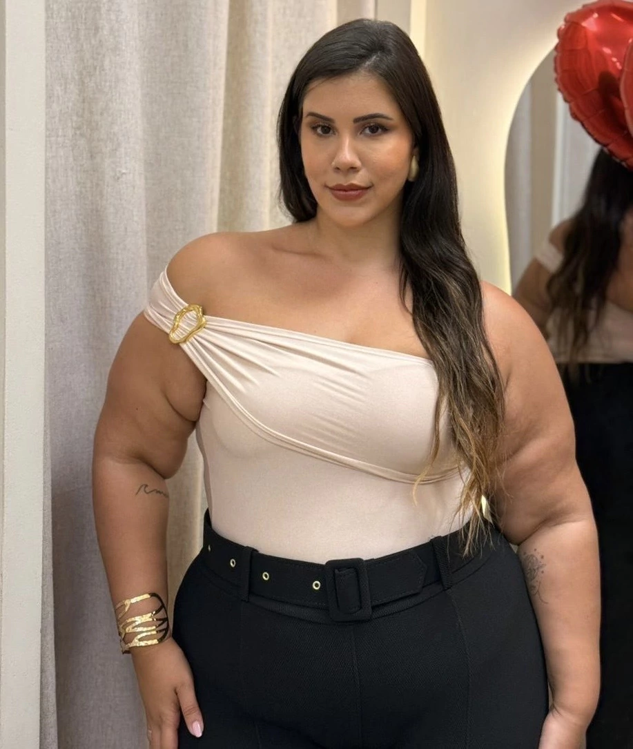 Medidas da Modelo: Busto: 112cm I Cintura: 96cm I Quadril: 131cm I Bunda: 135cm