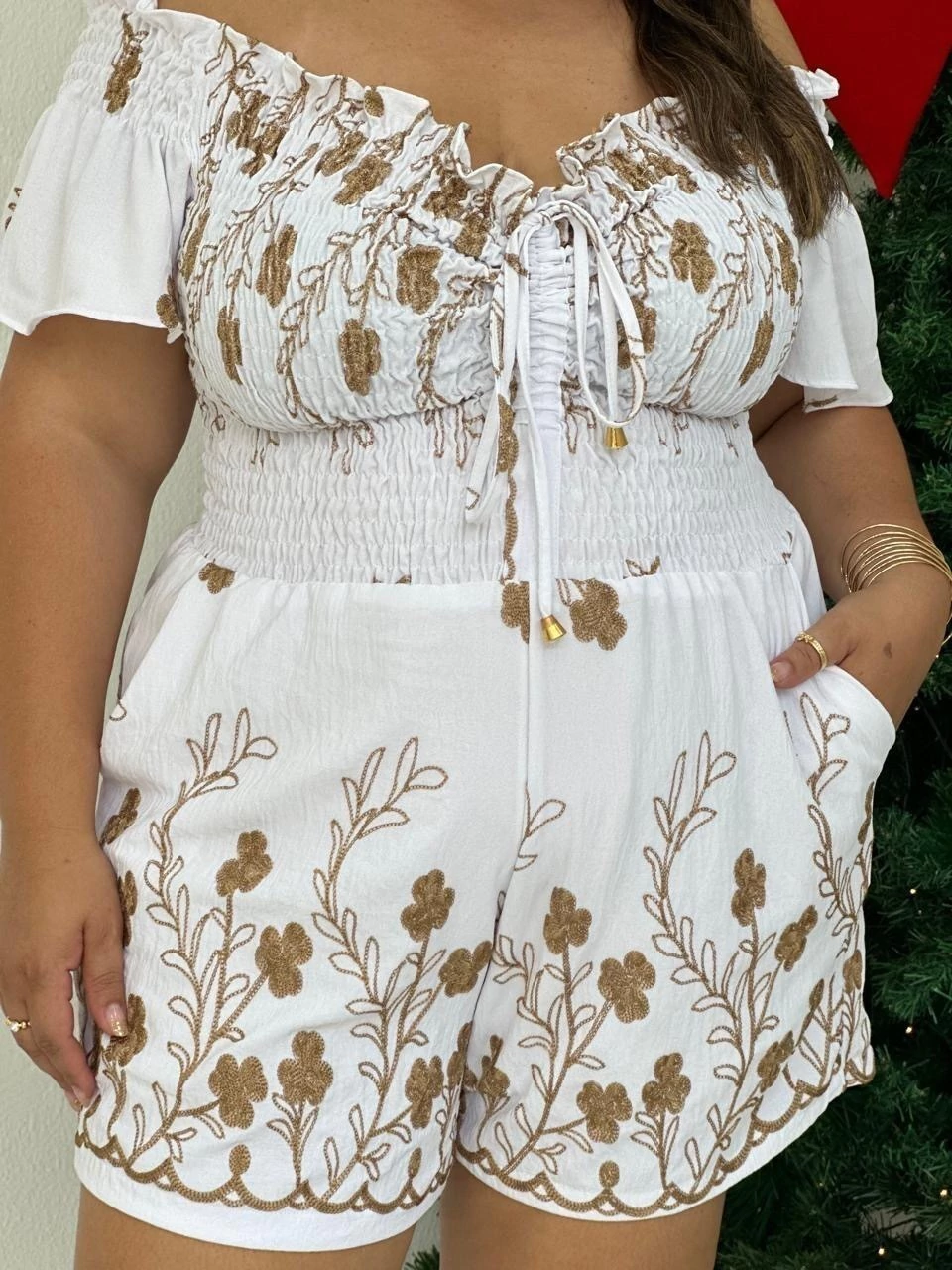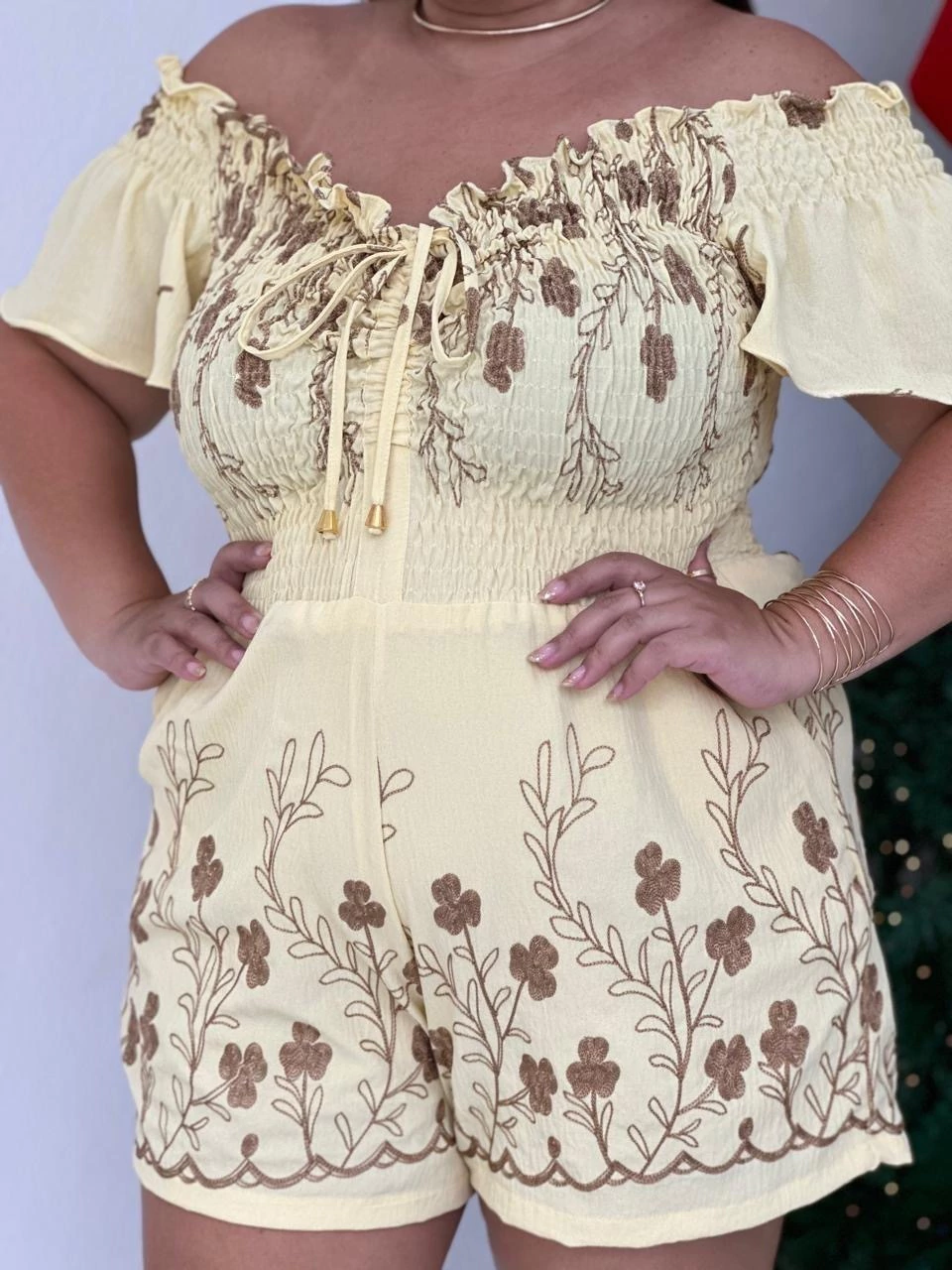 Macaquinho com lastex e regulagem na parte de cima e short soltinho.