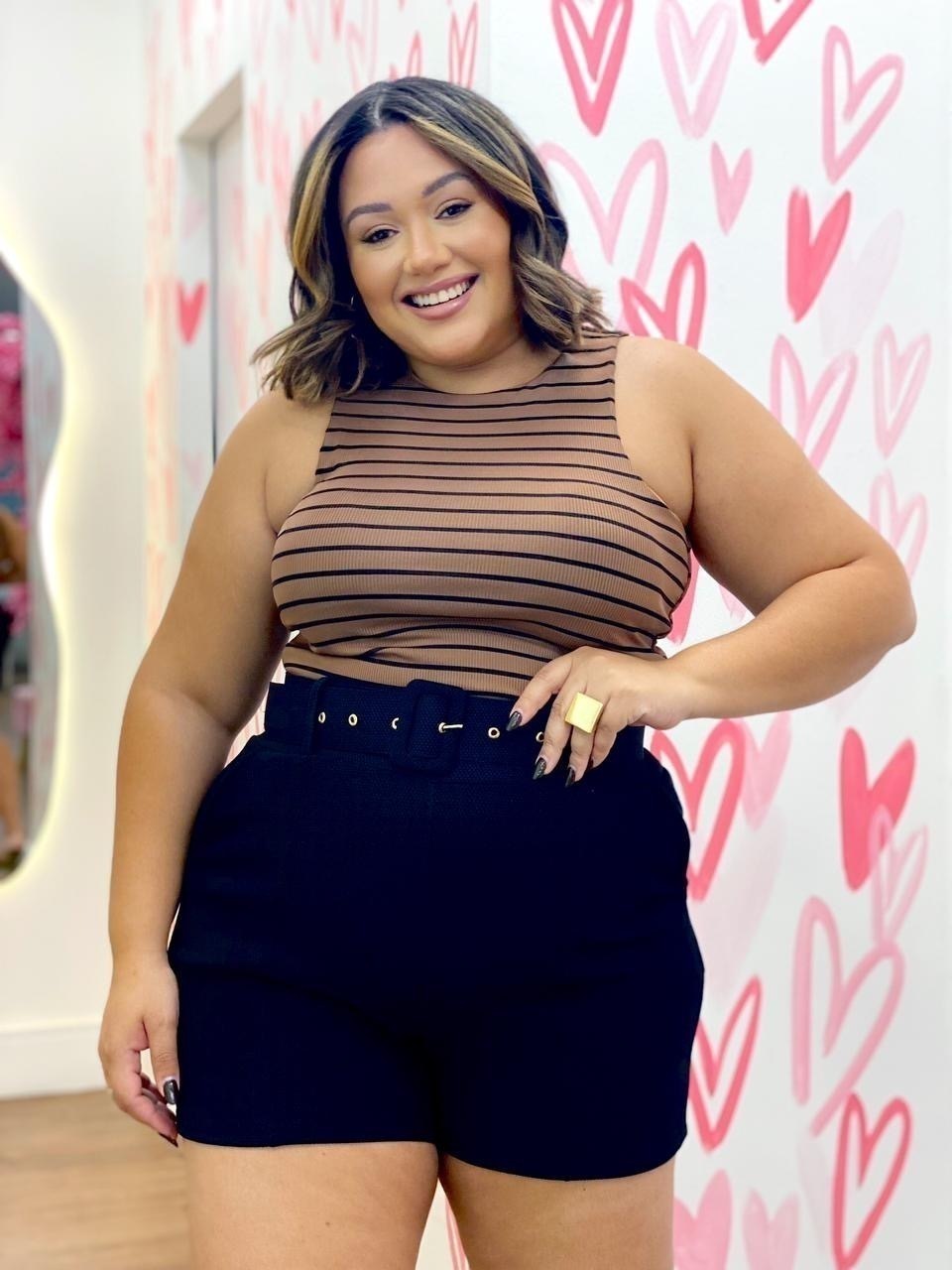 Medidas da Modelo: Busto: 112cm I Cintura: 96cm I Quadril: 131cm I Bunda: 135cm