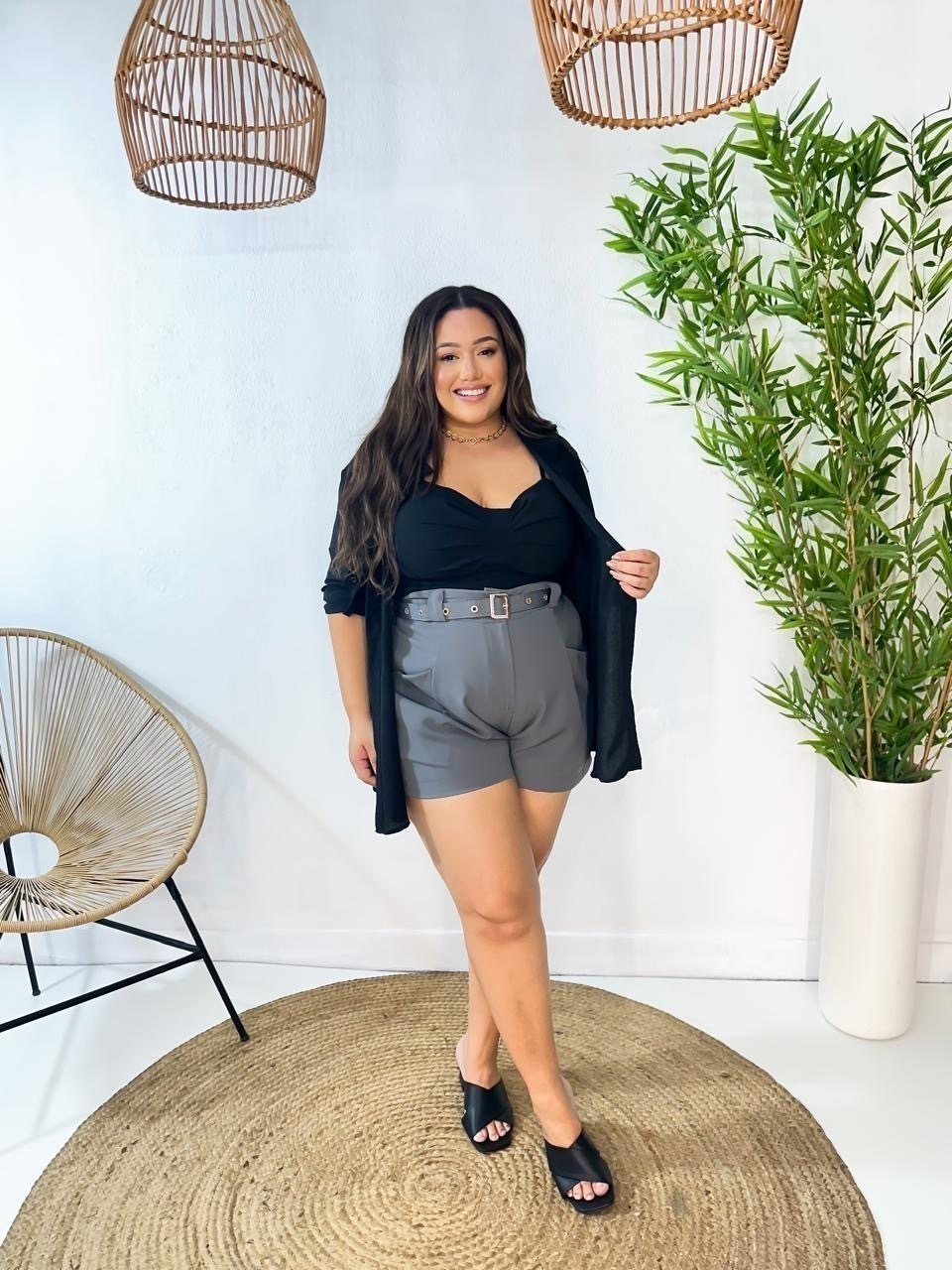 Short em tecido alfaiataria, possui bolsos frontais , cinto com detalhe de brilho em dourado.