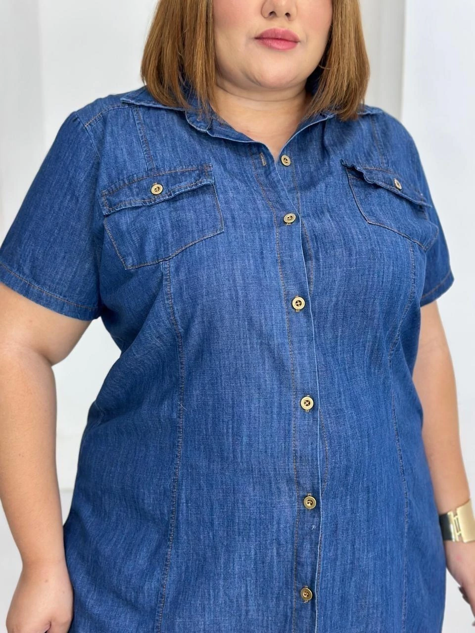 Vestido Chemise manga curta, botões que abrem até embaixo